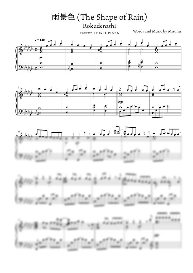 오랜만에 로쿠데나시의 곡을 준비해 보았는데요, 작년 여름에 발표된 비 내리는 풍경 (The Shape of Rain, 雨景色) 입니다! 노래가 참 좋아요 :D