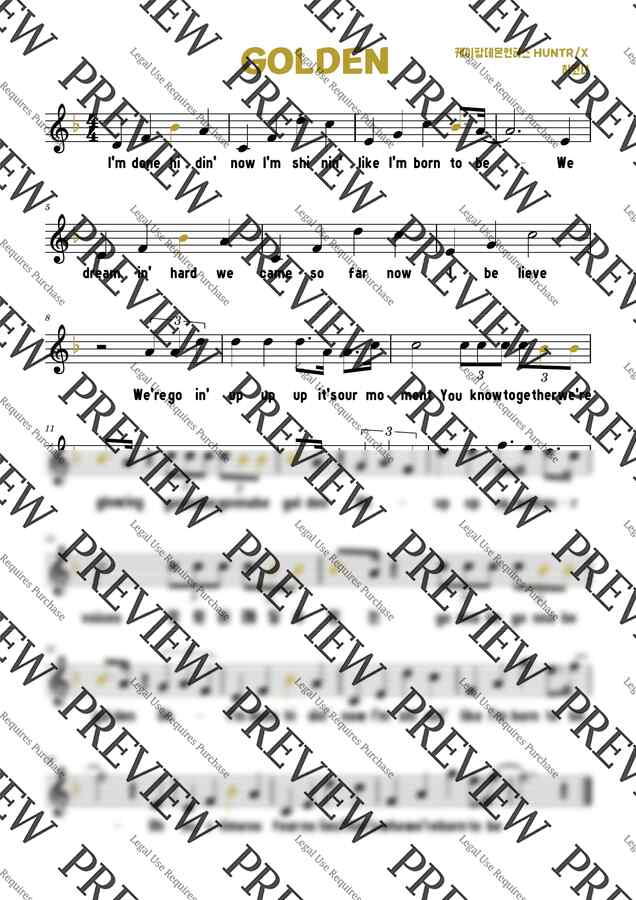 케이팝데몬헌터스 HUNTR/X - Golden (4/4 리코더 악보) by 히코더