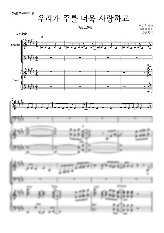 혼성 2부와 음원 그대로 밴드팀 메인건반 악보입니다.