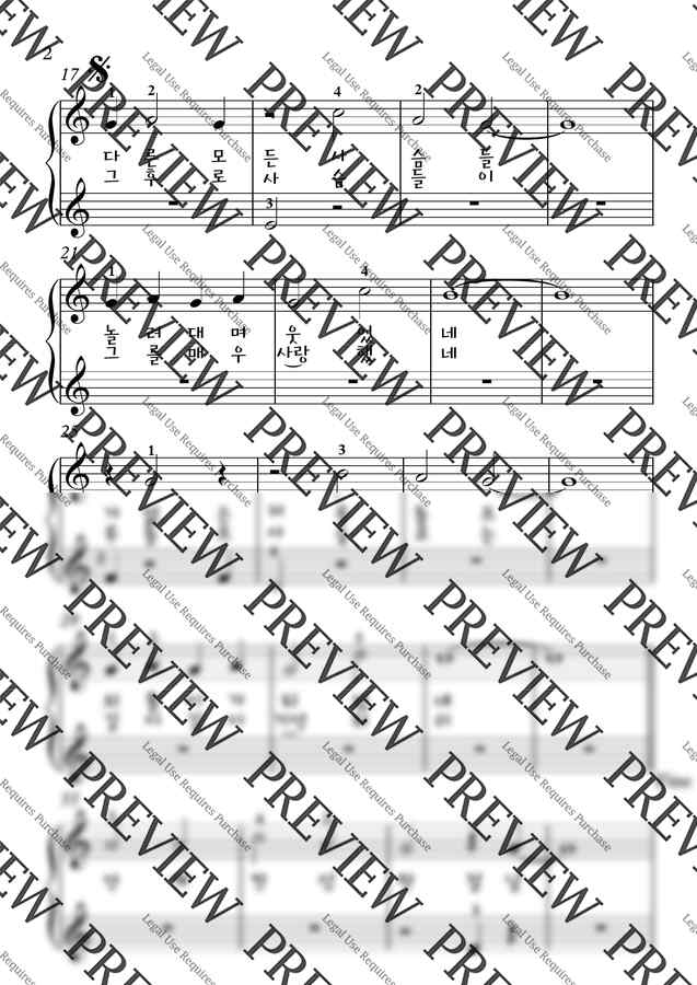 원곡의 8분음표 대신 4분음표, 2분음표, 온음표만 사용했습니다.