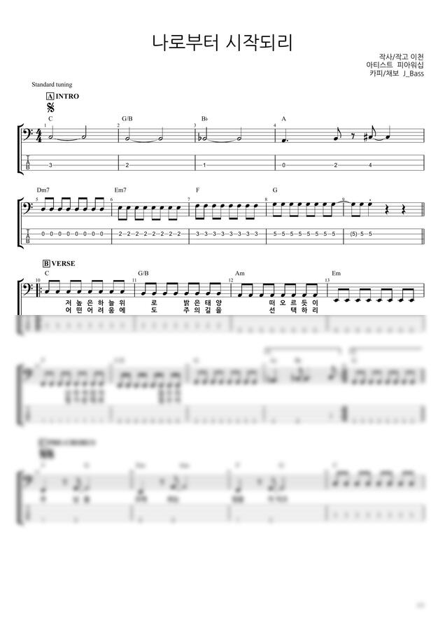 피아워십의 "나로부터 시작되리" 베이스기타 쉬운버전 악보입니다.