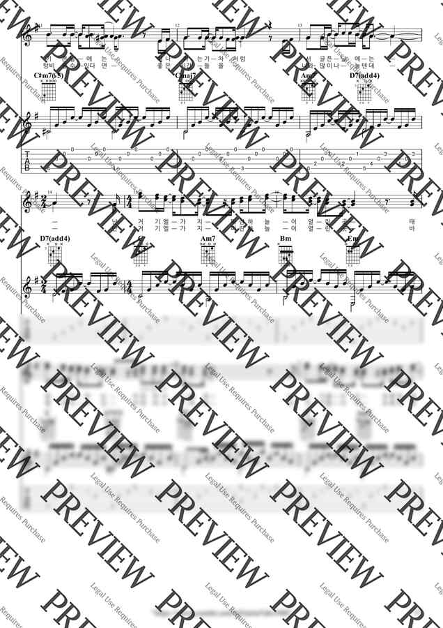 G Key / 3p/ 2단(노래+반주) / 5선(Staff) / 타브(TAB) / 가사(Lyrics) / 코드(Chords)