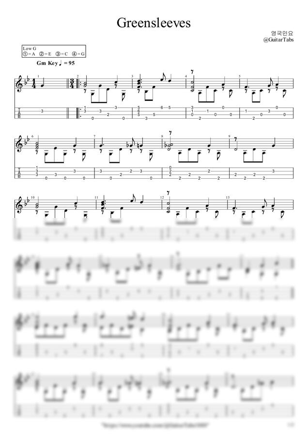 Gm Key / 2p / 1단(솔로) / 5선(Staff) / 타브(TAB)