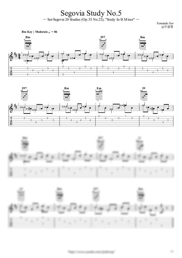 F. Sor - Segovia Study No.5(Op.35 No.22 Etude in B minor) by 우클통