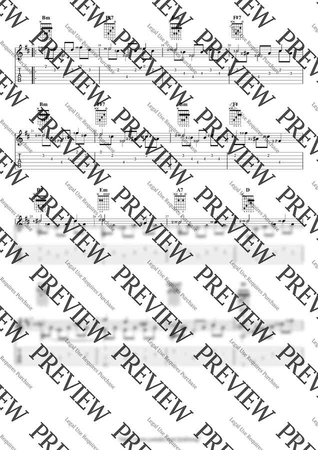 Bm Key / 3p / 1단(솔로) / 5선(Staff) / 타브(TAB) / 운지(Fingering) / 코드(Chords)