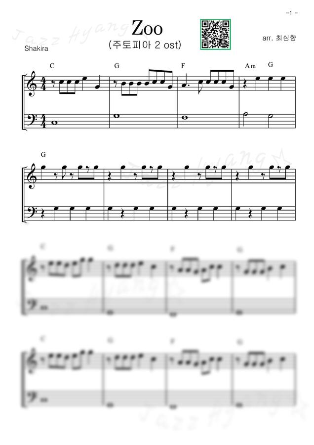 Zoo(2단)- 쉬운키(C키)_이지 Ver. 2, MR포함 https://www.mapianist.com/sheet/154143