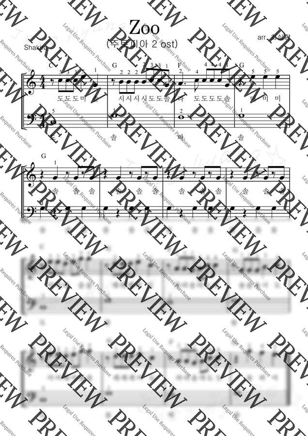 Zoo(2단)- 쉬운키(C키)_이지 Ver. 2, 악보만 https://www.mapianist.com/sheet/154169