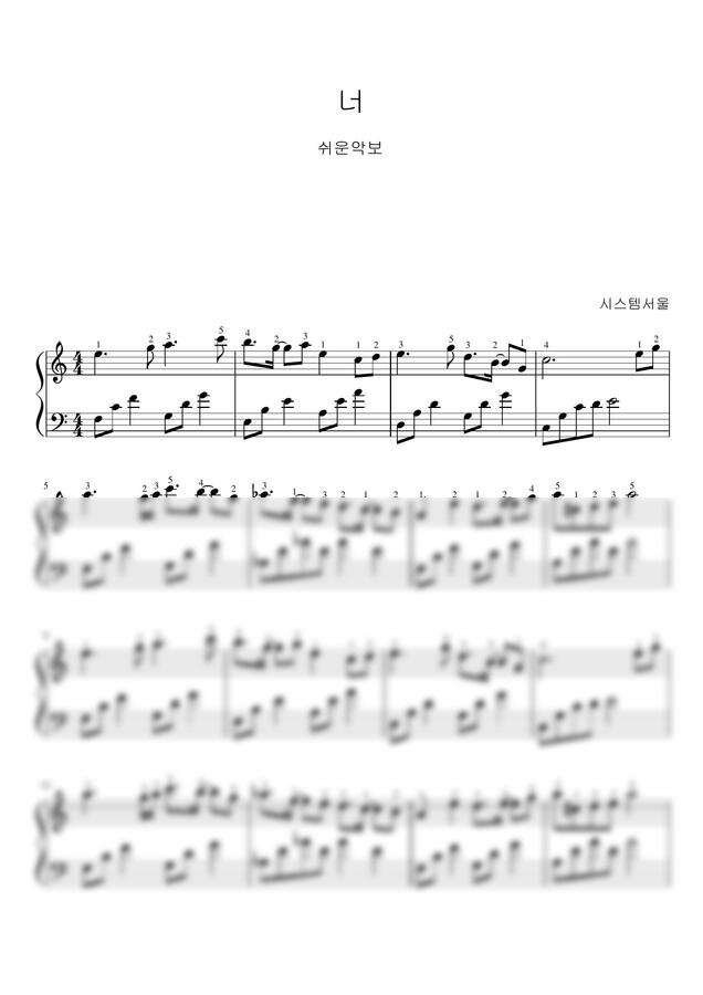 시스템서울 (SYSTEM SEOUL) - 너 (다장조) (쉽고 짧은 악보) by 이지피아노