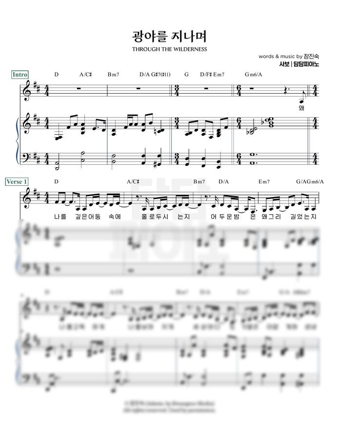 히즈윌 - 광야를 지나며 (D/E/F Key) by 담담피아노