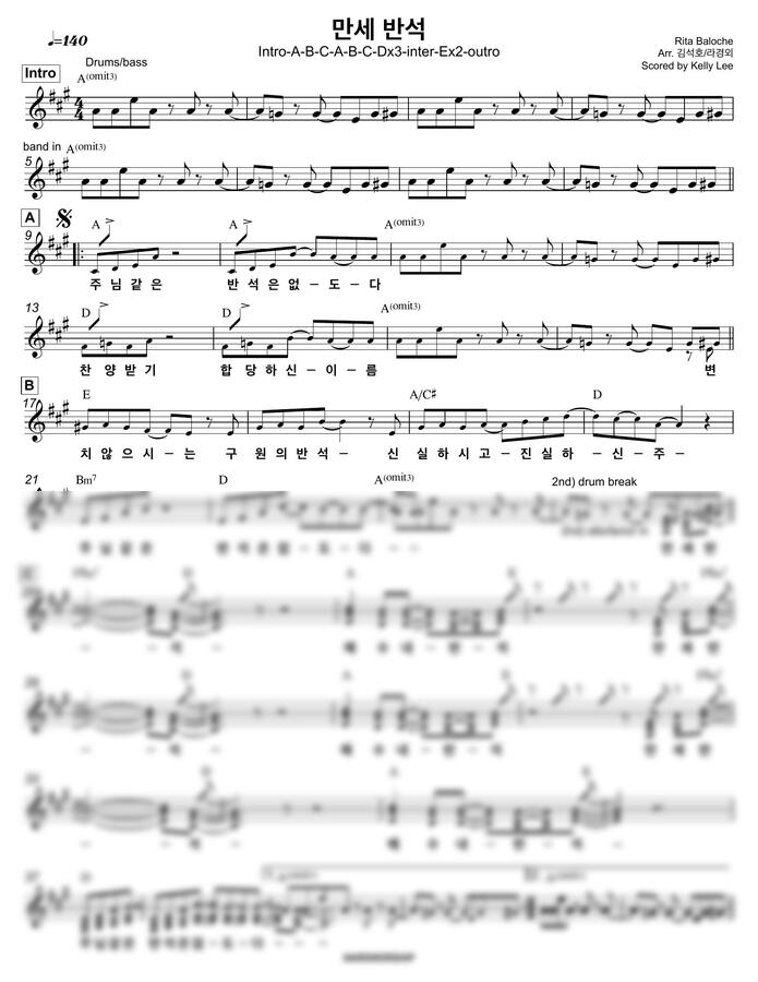 만세반석 브리지임팩트 프레이즈 음원 그대로 화음도 포함된 밴드 채보 악보입니다.