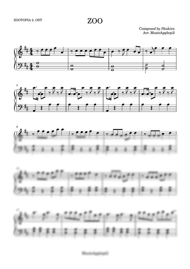주토피아2 OST - ZOO (원곡 D 쉬운악보) by MusicApplepi20