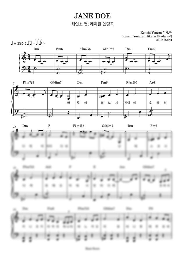 「JANE DOE (체인소 맨: 레제편 엔딩곡) -요네즈 켄시, 우타다 히카루 」 🎶