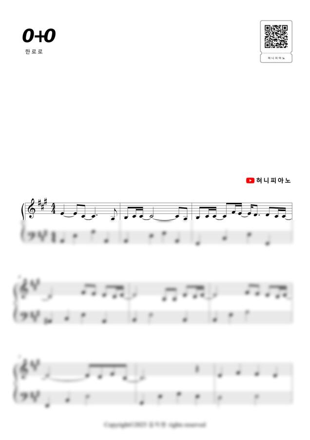 한로로 - 0+0 (쉬운 악보(A Key, C Key)) by 혀니피아노
