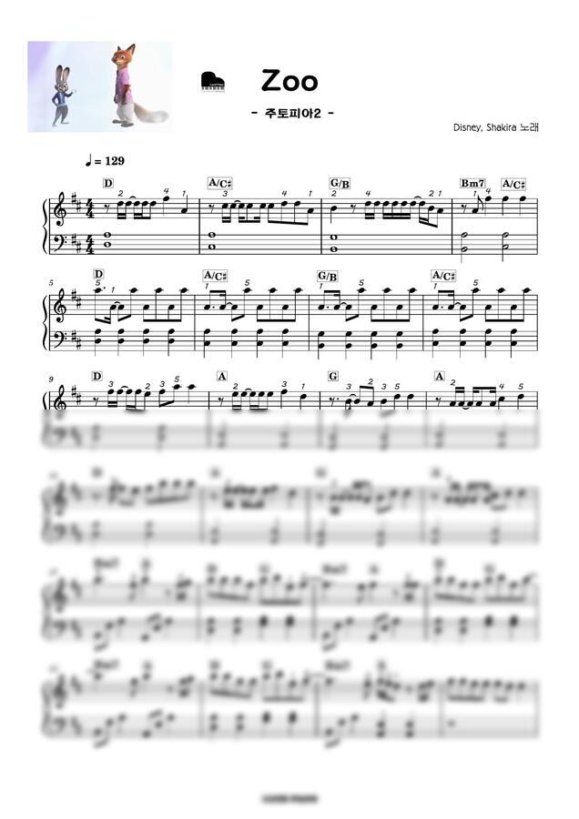 Shakira - Zoo (주토피아 2 OST) (원곡 조성 악보) by Lucid Piano