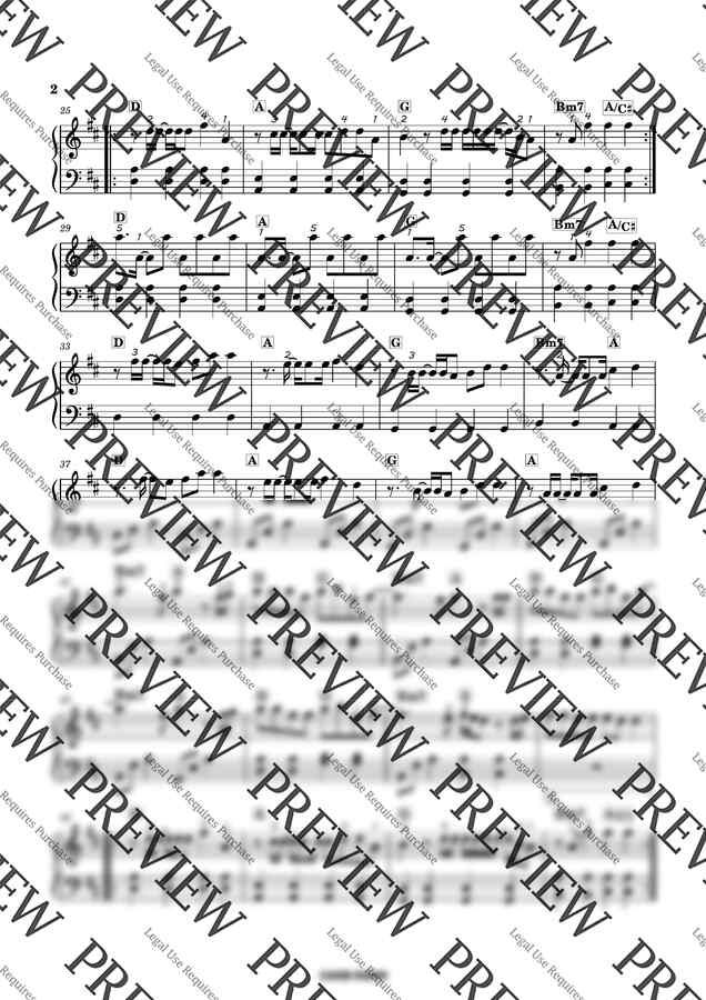 원곡 조성으로 어렵지 않게 오른손 단선율과 왼손 리듬을 사용하여 쉽게 편곡한(손가락 번호 표시) 악보입니다.