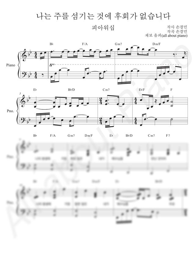 피아워십 - 나는 주를 섬기는 것에 후회가 없습니다 (원곡 그대로 반주) by all about piano_CCM