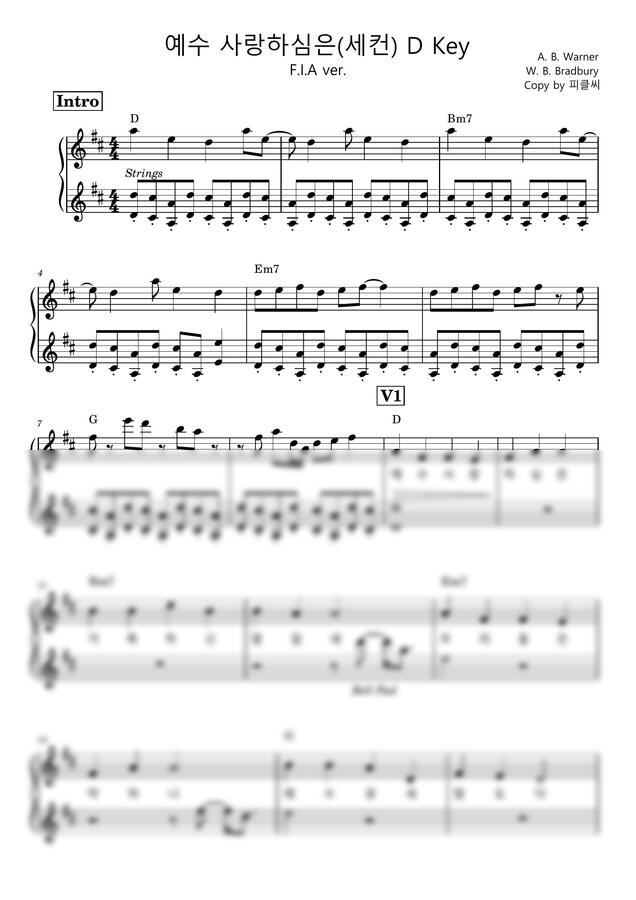 피아워십 - 예수 사랑하심은 (세컨악보) 원곡 D Key by 피클씨
