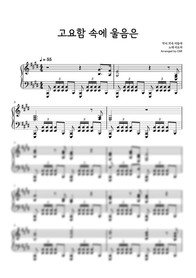 리도어의 고요함 속에 울음은 피아노 악보입니다