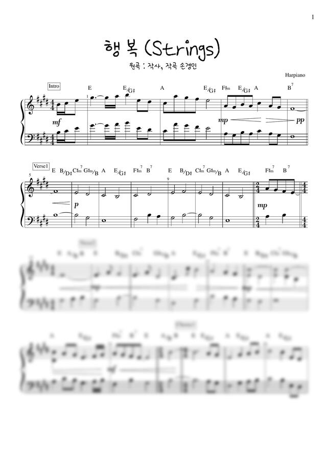 손경민 - 행복 (E키 세컨 스트링) by Harpiano
