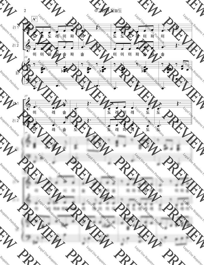 리코더 1, 2, 피아노, 멜로디언(간주) 구성입니다.