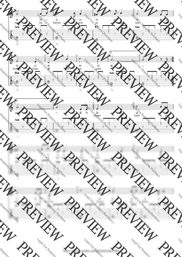 Am Key / 3p / 2단(노래+반주) / 5선(Staff) / 타브(TAB) / 가사(Lyrics) / 코드(Chords)