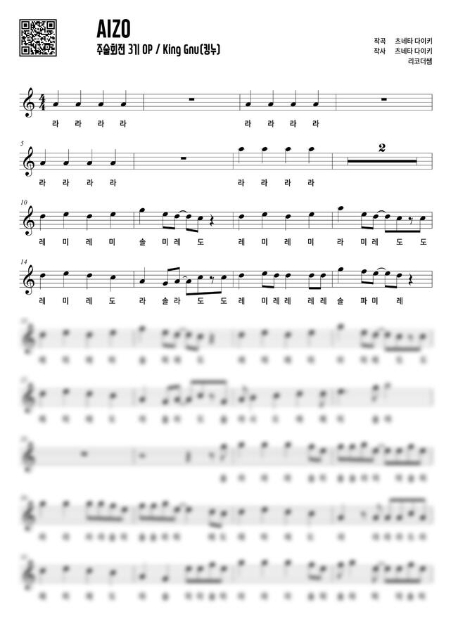 주술회전 OST - AIZO (계이름) by 리코더쌤