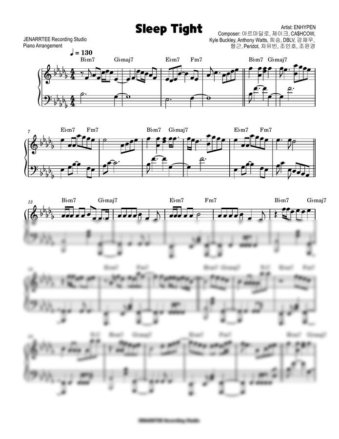 ENHYPEN 'Sleep Tight' piano sheet music (original + easy key).