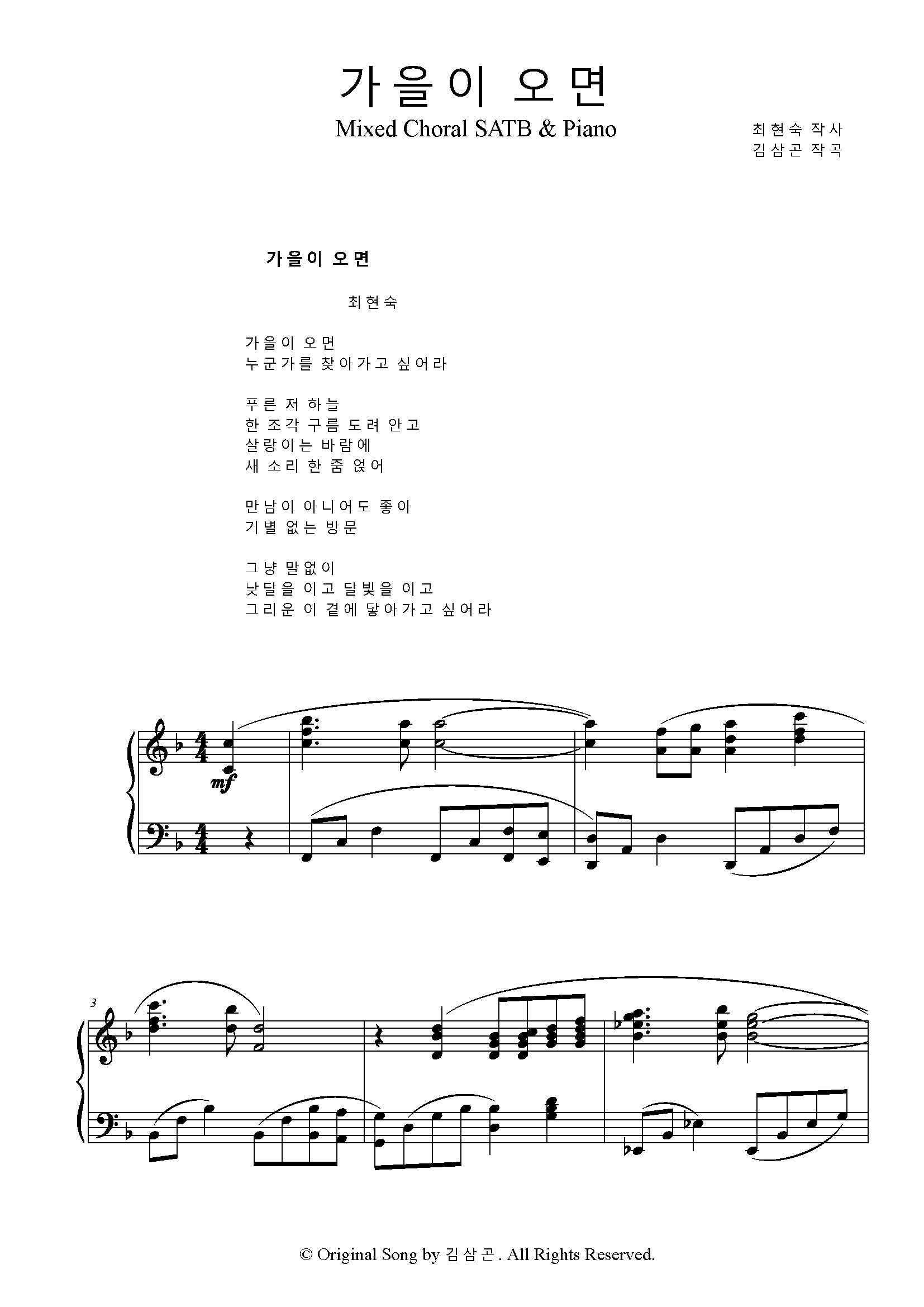 #가을합창 #혼성합창 #김삼곤 #서정적인합창곡 #SATB #가을노래 #가을합창곡