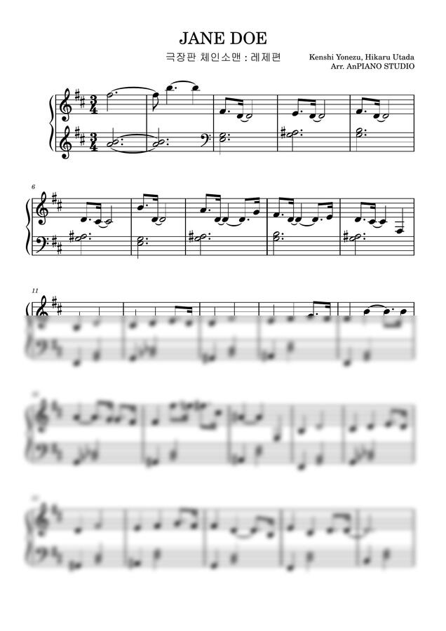 체인소맨 : 레제편 Kenshi Yonezu, Hikaru Utada - JANE DOE (제인도) (원키, C키 쉬운버) by AnPIANO STUDIO