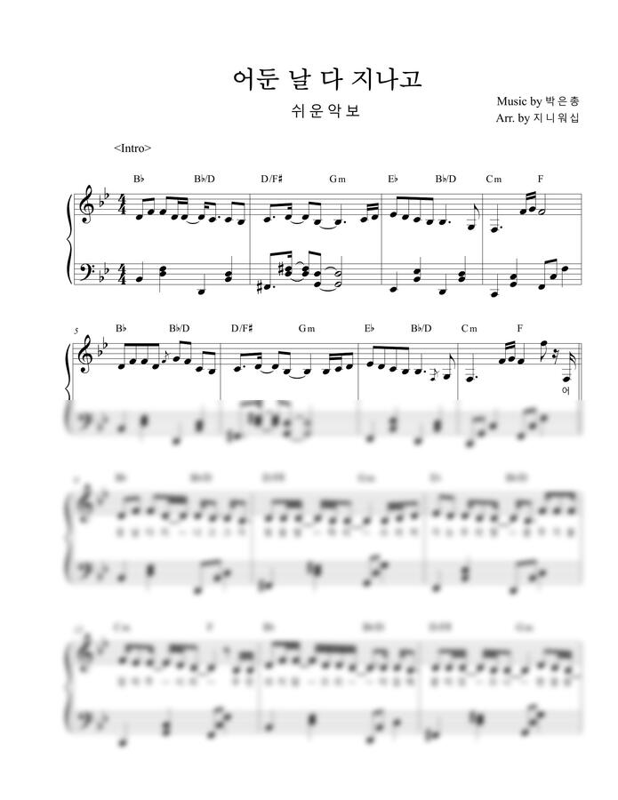 어둔 날 다 지나고 쉬운 악보 D키 바로가기 https://www.mapianist.com/sheet/99619