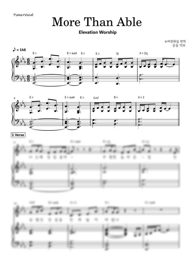 엘리베이션 워십 - More Than Able(한국어 번역) (C/D/Eb키) by 공음