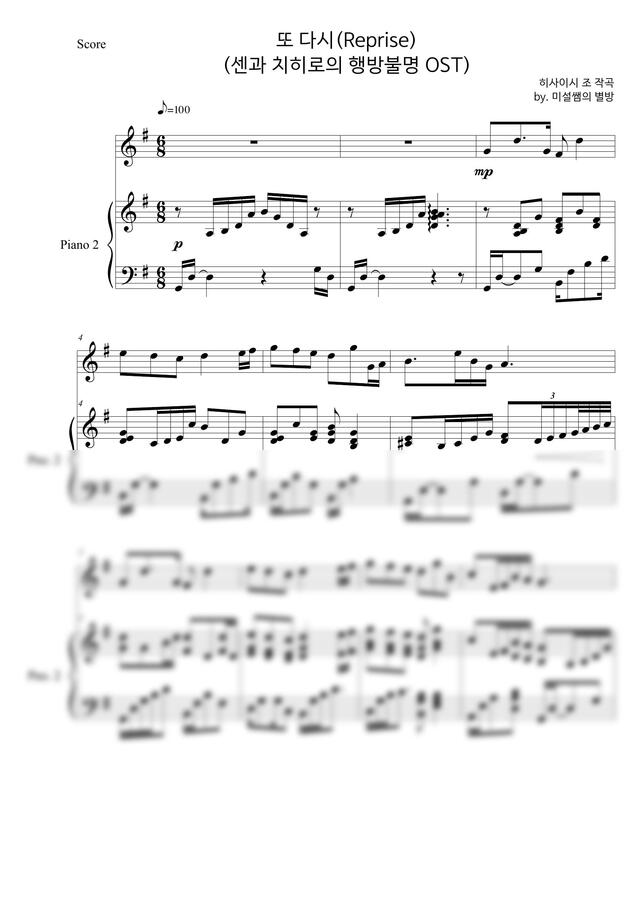 센과 치히로의 행방불명 OST 또 다시 9개 악기 합주에 활용할 수 있는 반주 MR입니다.