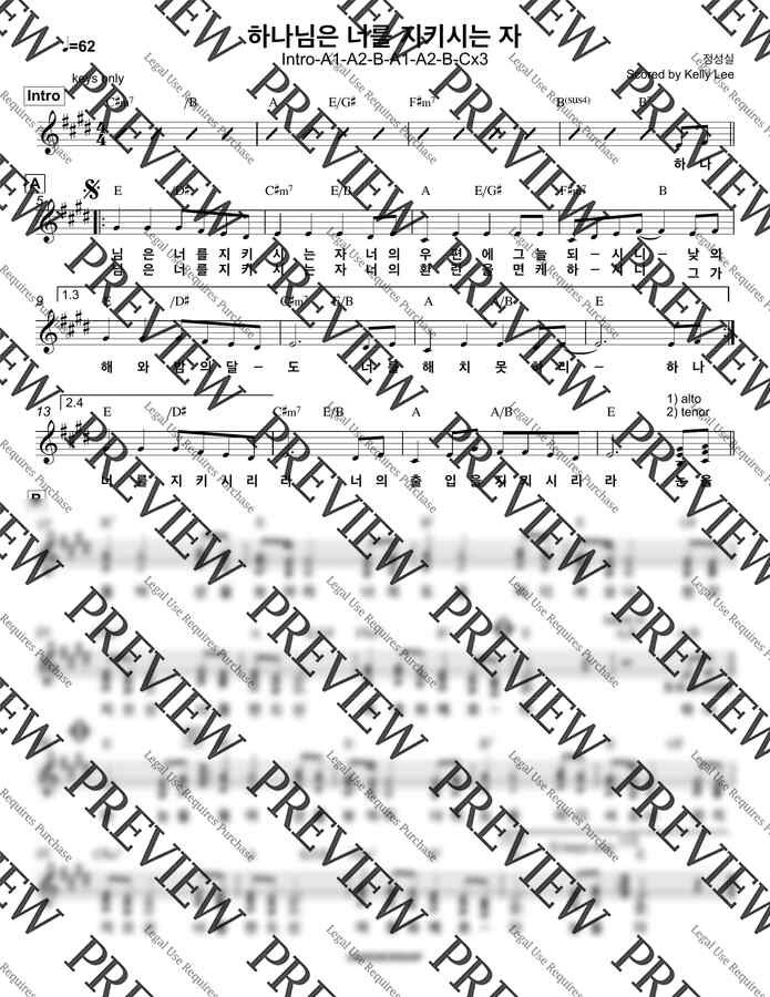 피아버전 - 하나님은 너를 지키시는 자 밴드악보 (섹션포함) by Kelly Lee0