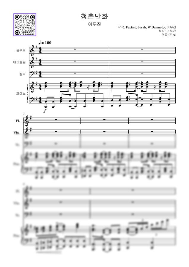 이 곡은 피아노곡, 2중주, 3중주, 4중주 편성의 악보가 모두 준비되어 있습니다!