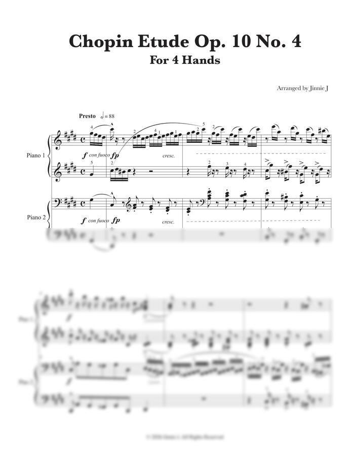 쇼팽 에튀드 Op.10 No.4를 피아노 4핸즈로 편곡한 악보입니다.