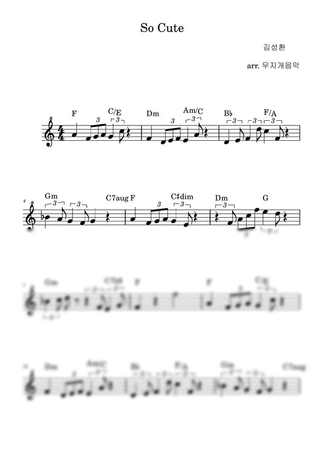 김성환 - So Cute 멜로디+코드(리코더 가능) by 무지개음악