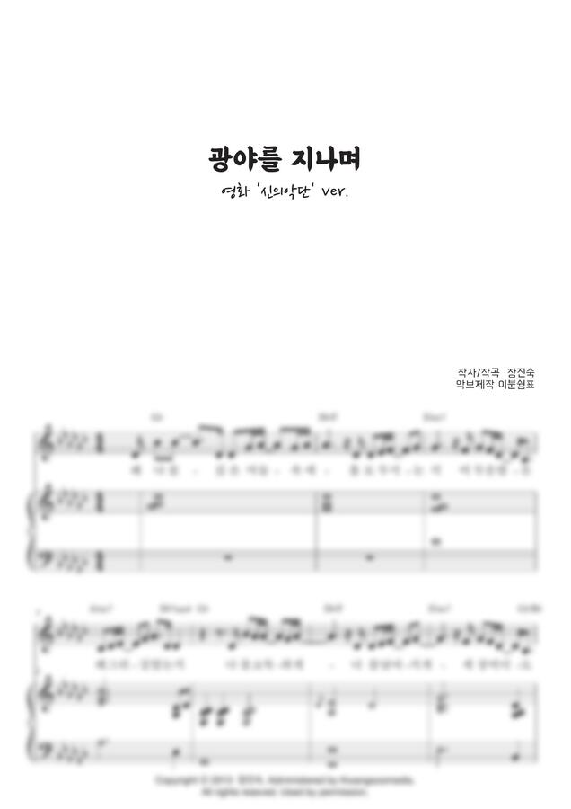 영화 [신의악단]버전의 '광야를 지나며' 피아노 3단 악보입니다.