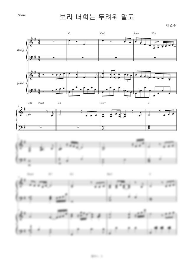 신디사이저 스트링과 피아노 협주 4단 악보입니다.