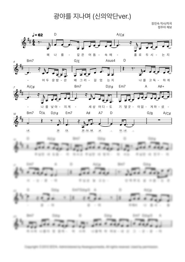 장진숙 - 광야를 지나며(신의악단ver.) (D Key) by 정주아 채보1