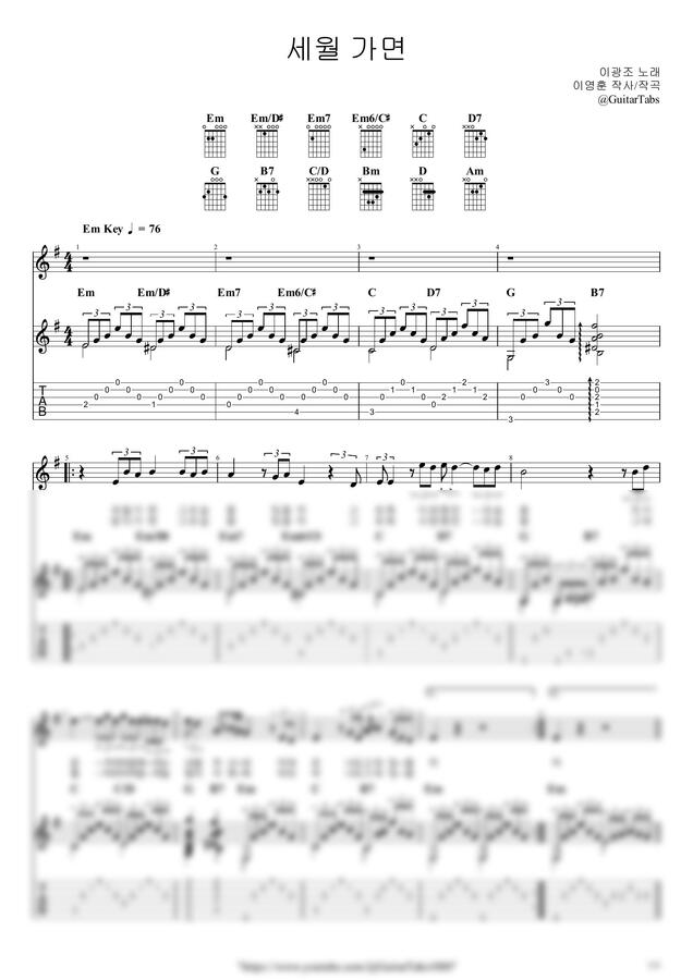 Em Key / 3p / 2단(노래+반주) / 5선(Staff) / 타브(TAB) / 가사(Lyrics) / 코드(Chords)