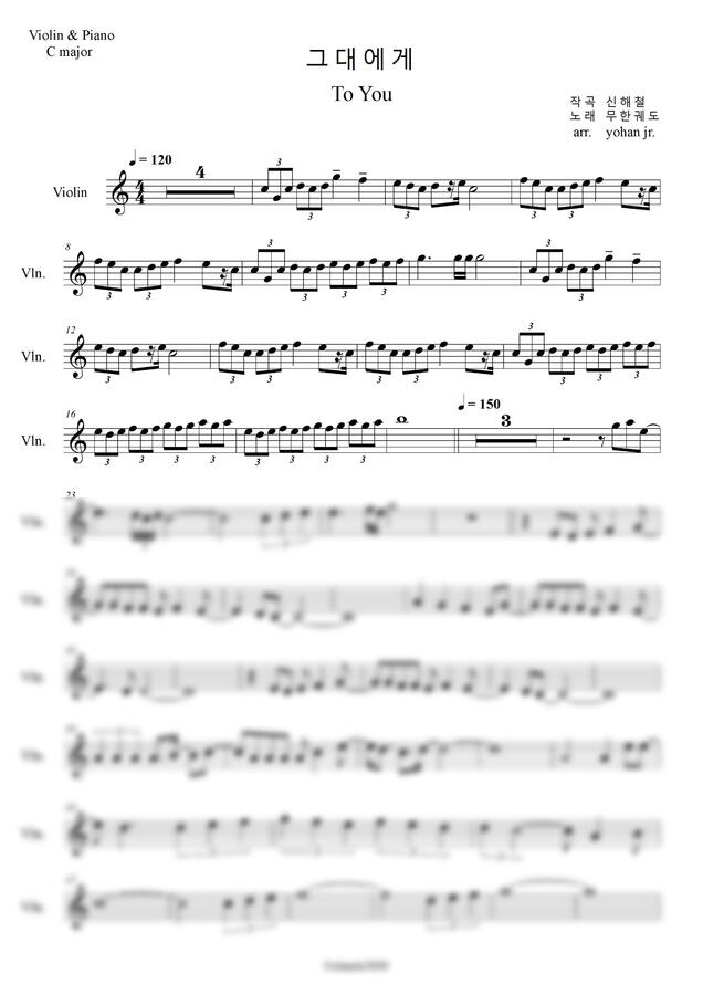 신해철(무한궤도}님의 '그대에게''를 바이올린으로 연주할 수 있도록 편곡한 악보입니다.