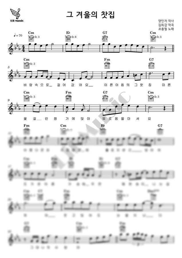 조용필 - 그 겨울의 찻집 / 기타 악보입니다. (원키 + Capo3 악보 포함)