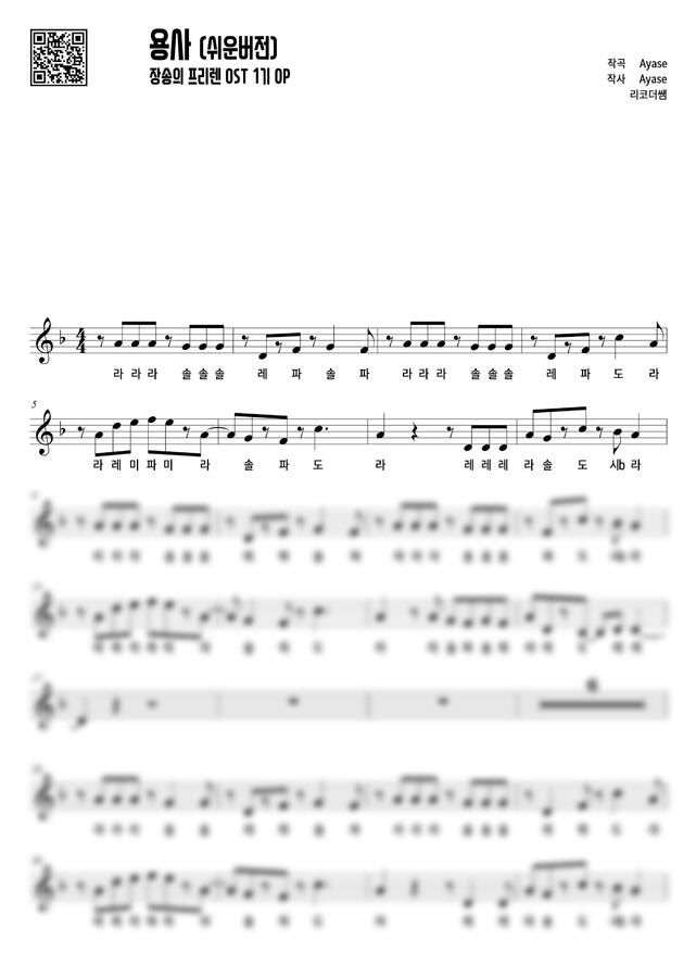 장송의 프리렌 OST - 용사 (계이름, 쉬운버전) by 리코더쌤