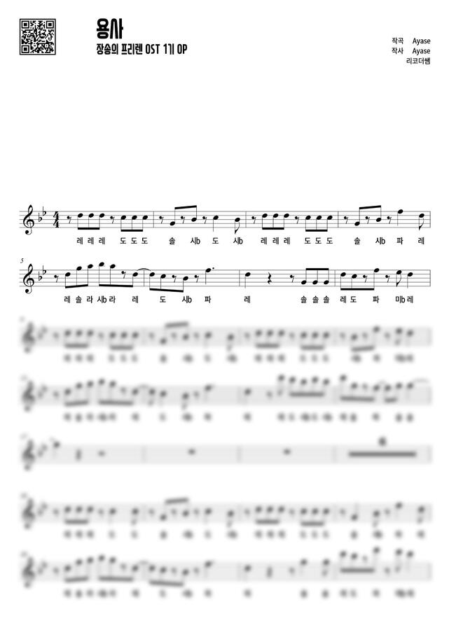 장송의 프리렌 OST - 용사 (계이름, 어려운버전) by 리코더쌤