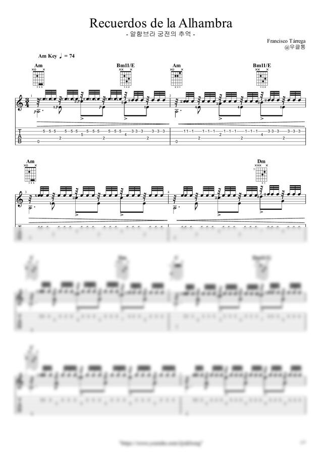 * 클#0051(고)Recuerdos de la Alhambra(알함브라 궁전의 추억)-F. Tarrega-Am-7p *