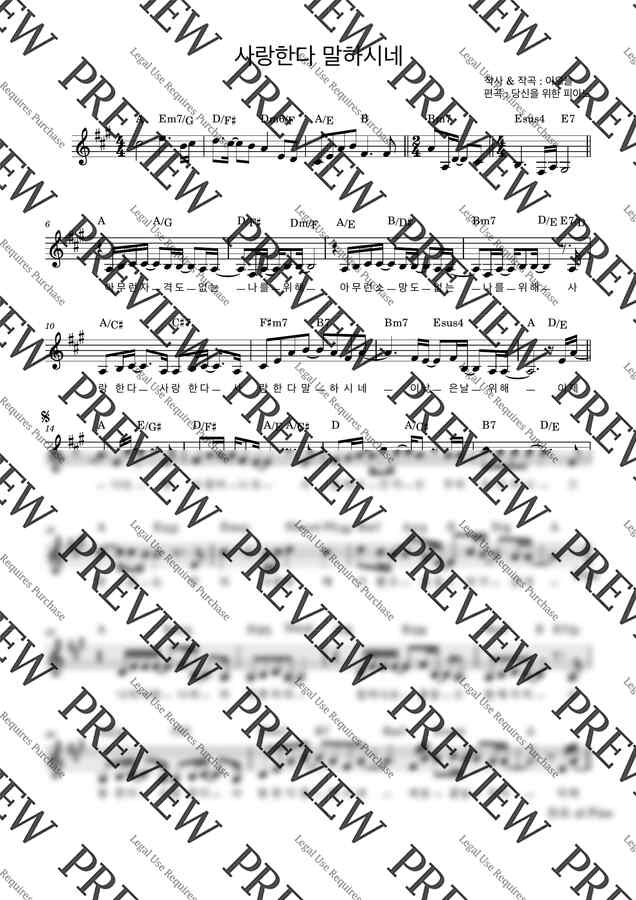 A키 (전주포함)멜로디 + 가사 + 코드 악보입니다😊