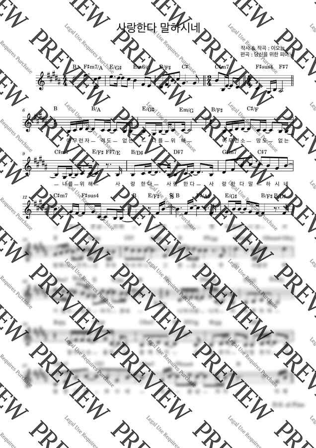 B키 (전주포함)멜로디 + 가사 + 코드 악보입니다😊