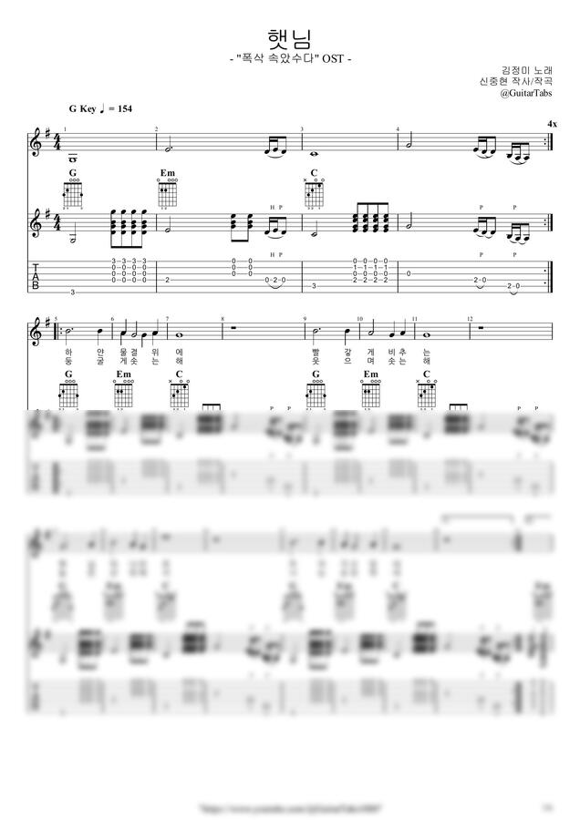 G Key / 6p/ 2단(노래+반주) / 5선(Staff) / 타브(TAB) / 가사(Lyrics) / 코드(Chords)