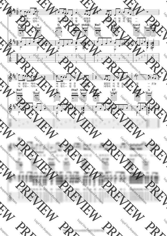 D Key / 4p / 2단(노래+반주) / 5선(Staff) / 타브(TAB) / 가사(Lyrics) / 코드(Chords)