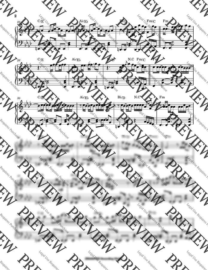 This tutorial video is in the original key but this purchase includes sheet music for both the original key (F Minor / Ab Major) and an easier key (E Minor / G Major).